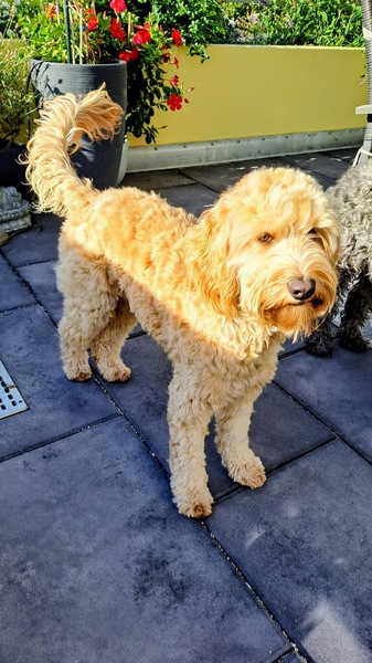 Kayleigh heißt jetzt Sally und ist ein Peaches-Kind. Sie hat ca. ein halbes Jahr bei uns gelebt, da die ursprünglich für sie geplante Familie überraschend abgesprungen ist. Sie hat sich sehr gut ins Rudel eingefügt, trotzdem habe ich sie in eine Guardian Familie in Worms abgegeben. Dort lebt sie mit einem älteren Hundeherren zusammen und wirbelt das Leben dort ordentlich durcheinander.