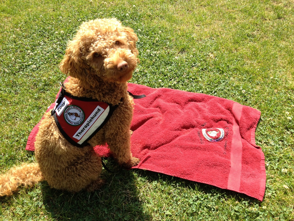 Zoey hat die Ausbildung zum Therapebegleithund abgeschlossen und arbeitet mit mir in meiner Praxis.